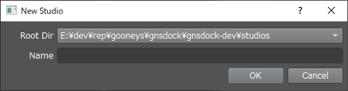 | Name | 作成するスタジオの名前、全てのRootDir下でユニークな名前を指定する必要があります。 |